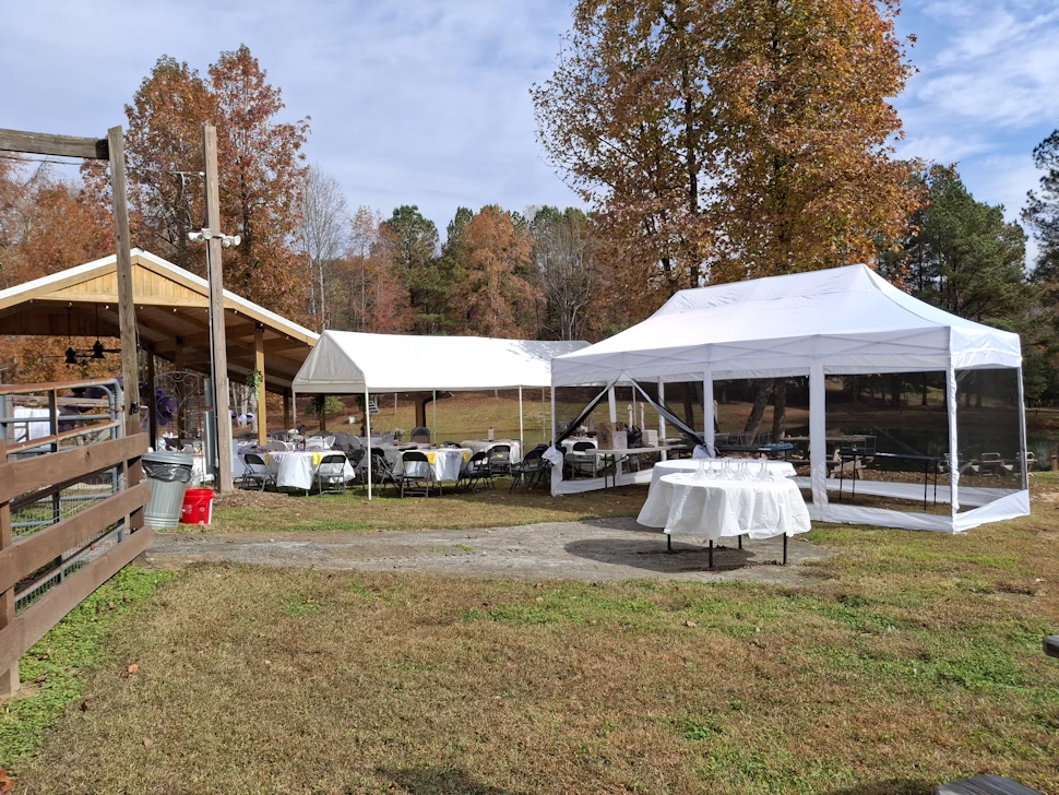 Screened Tent Rental - Enhance your event with our 10’ x 20’ screened tent, available for rent at $200, which includes complete set-up and take-down services. This versatile tent provides a comfortable, enclosed space that can be used for additional guest seating or as a designated area for food service, etc.